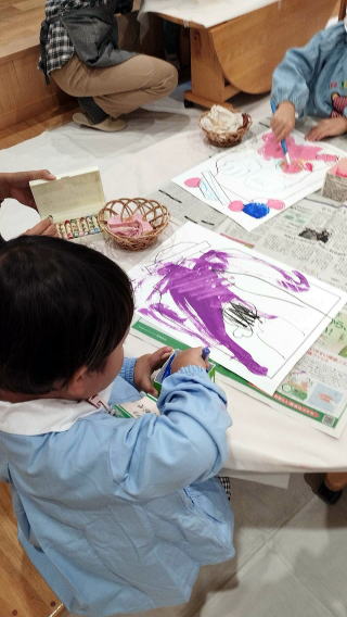 野菜スタンプでお絵描き。それから、お庭でプレイデー