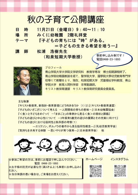 2025年11月21日(金曜日)秋の子育て公開講座のご案内はこちら。参加ご希望の方はお電話で!